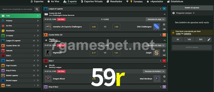 A aposta 59r oferece aos jogadores a experiência mais conveniente de apostas em eSports!